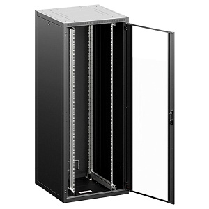 Передняя дверь выполнена из закаленного стекла в прочной стальной рамке, снабжена поворотной ручкой с замком и открывается до 180°. Ее можно переставить для правого или левого открывания. Задняя панель – съемная, с кабельными вводами, при необходимости заменяется на перфорированную или вентилируемую дверь. Боковые панели также съемные и оснащены замками, что упрощает монтаж и обслуживание оборудования.