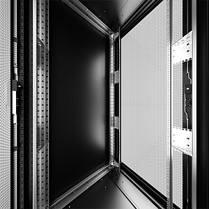 Передняя и задняя двери: вентилируемые с перфорацией 86%, способствующей эффективному охлаждению оборудования.