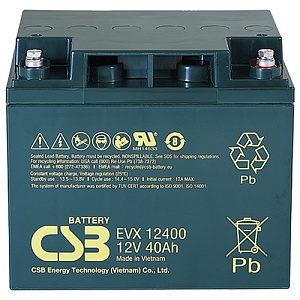 Аккумуляторная батарея EVX 12400 – герметизированная модель с увеличенным сроком службы. Аккумуляторы изготавливаются в прочном и герметизированном корпусе, что исключает вероятность протечки электролита. Производство осуществляется по технологии AGM – сгущенный электролит абсорбирован в стекловолоконный сепаратор. Эти модели можно эксплуатировать как в буферном, так и в циклическом режиме.