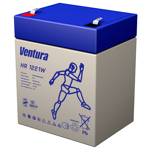 Аккумулятор Ventura HR 1221W – герметичная свинцово-кислотная батарея AGM-типа с номинальным напряжением 12 В. Модель рассчитана на высокие токи разряда и используется преимущественно в системах резервного питания. Благодаря технологии VRLA аккумулятор не требует обслуживания и может устанавливаться в различных положениях.