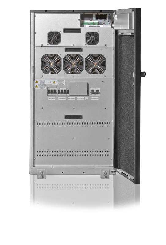 Управление ИБП осуществляется с лицевой панели, информация выводится на компактный встроенный дисплей. Предусмотрена возможность параллельной работы с другими ИПБ для поддержания стабильного резервного питания. К внешней сети и потребителям устройство подключается через клеммные колодки. Используется для защиты трехфазных потребителей, чувствительных к небольшим отклонениям частоты.